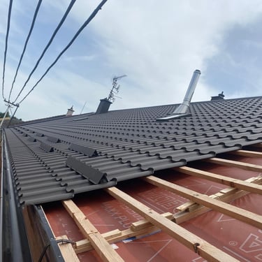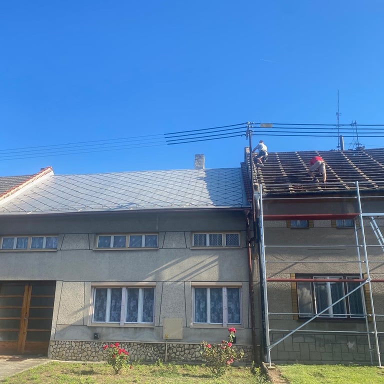 Výměna střešní krytiny za trapézový plech, původní krytina Onduline.